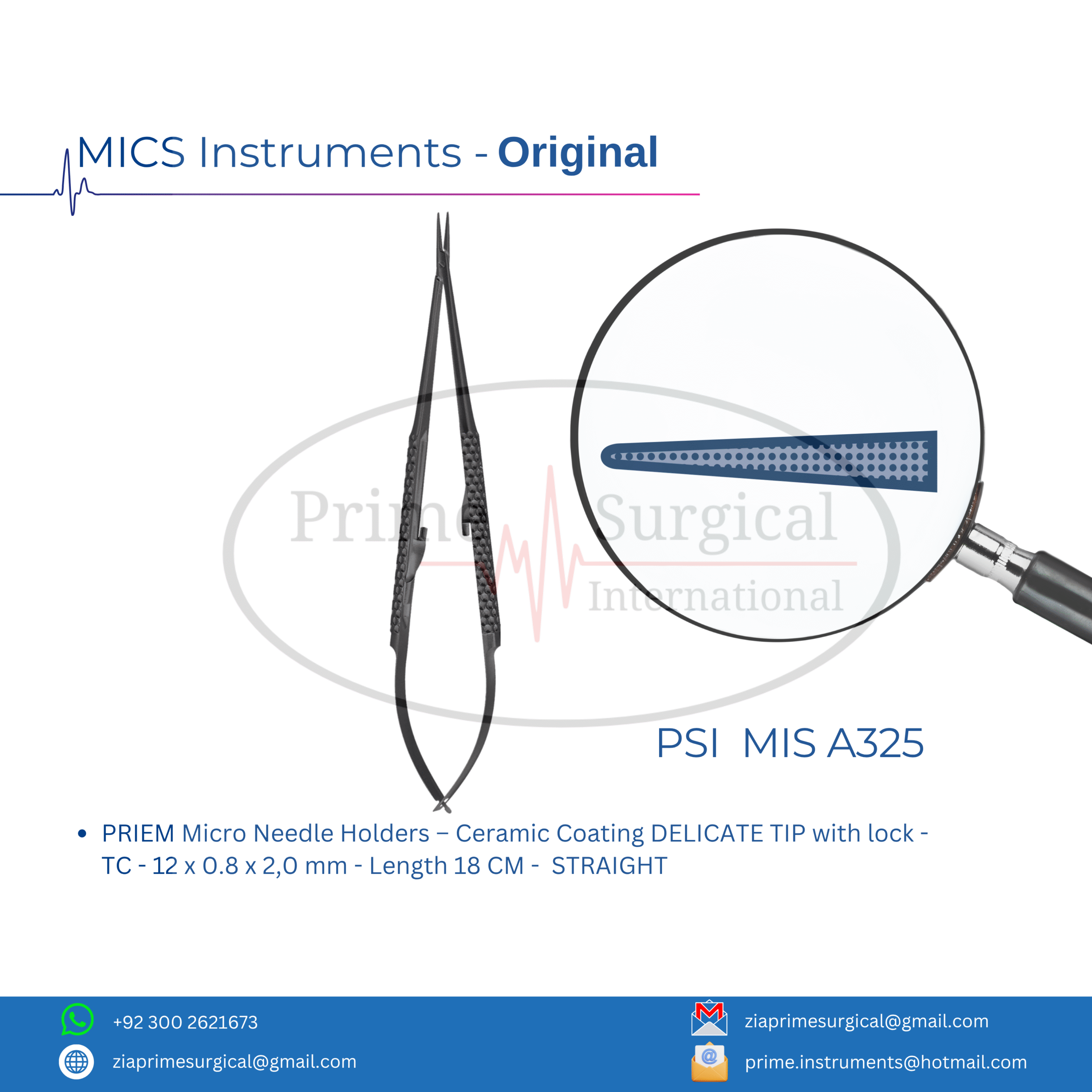 PRIEM Micro Needle Holders – Ceramic Coating DELICATE TIP with lock – TC – 12 x 0.8 x 2,0 mm – Length 18 CM – STRAIGHT