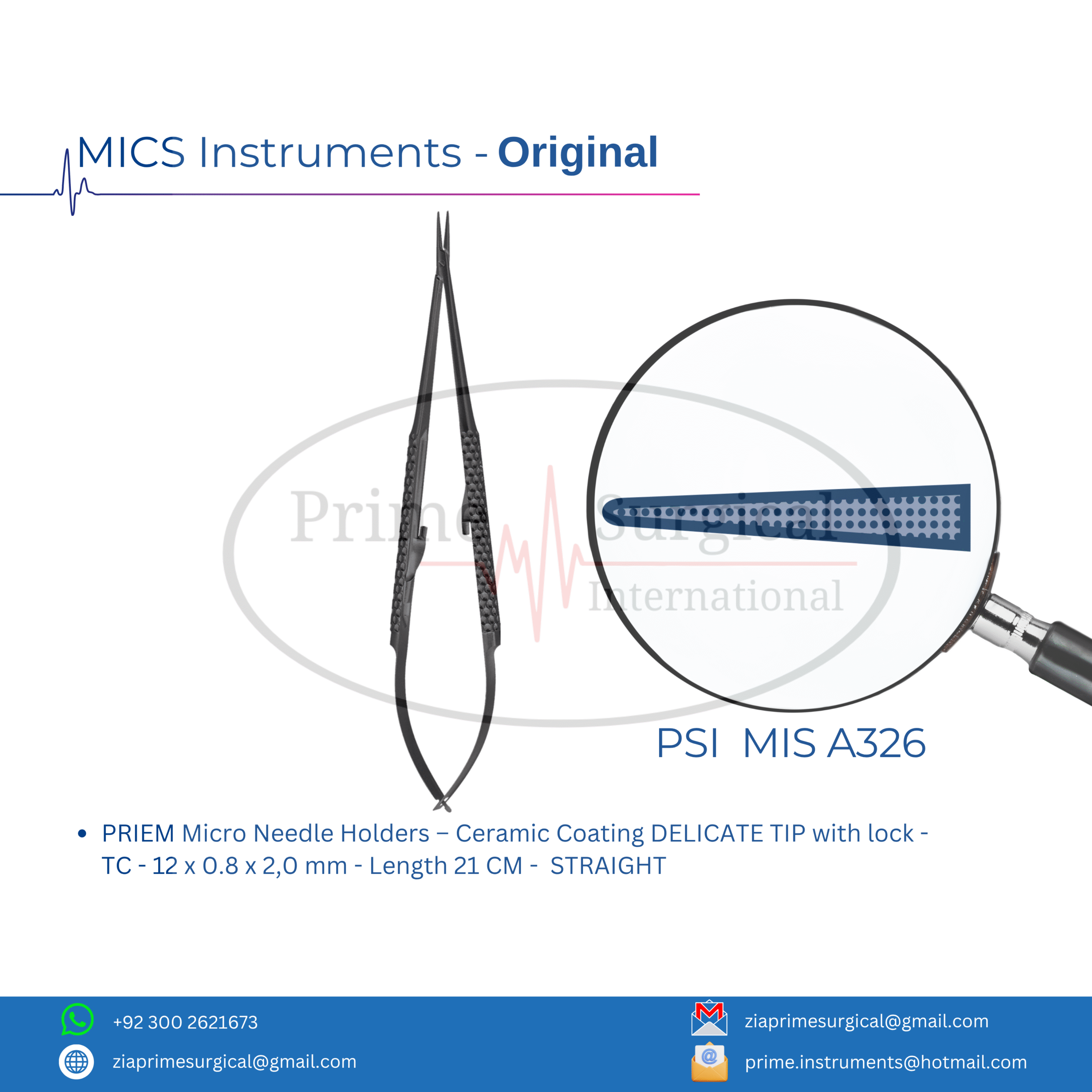 PRIEM Micro Needle Holders – Ceramic Coating DELICATE TIP with lock – TC – 12 x 0.8 x 2,0 mm – Length 21 CM – STRAIGHT