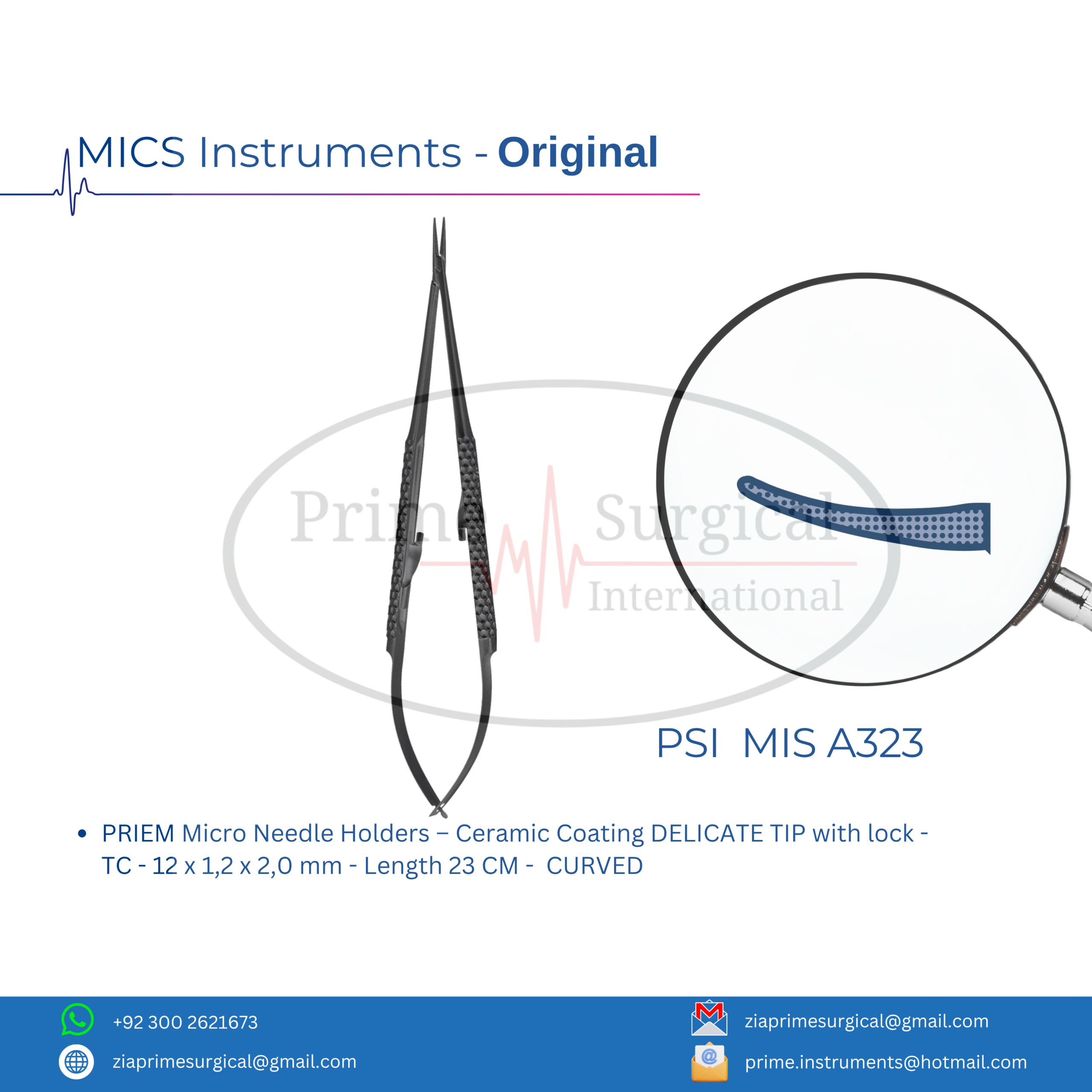 PRIEM Micro Needle Holders – Ceramic Coating DELICATE TIP with lock – TC – 12 x 1,2 x 2,0 mm – Length 23 CM – CURVED