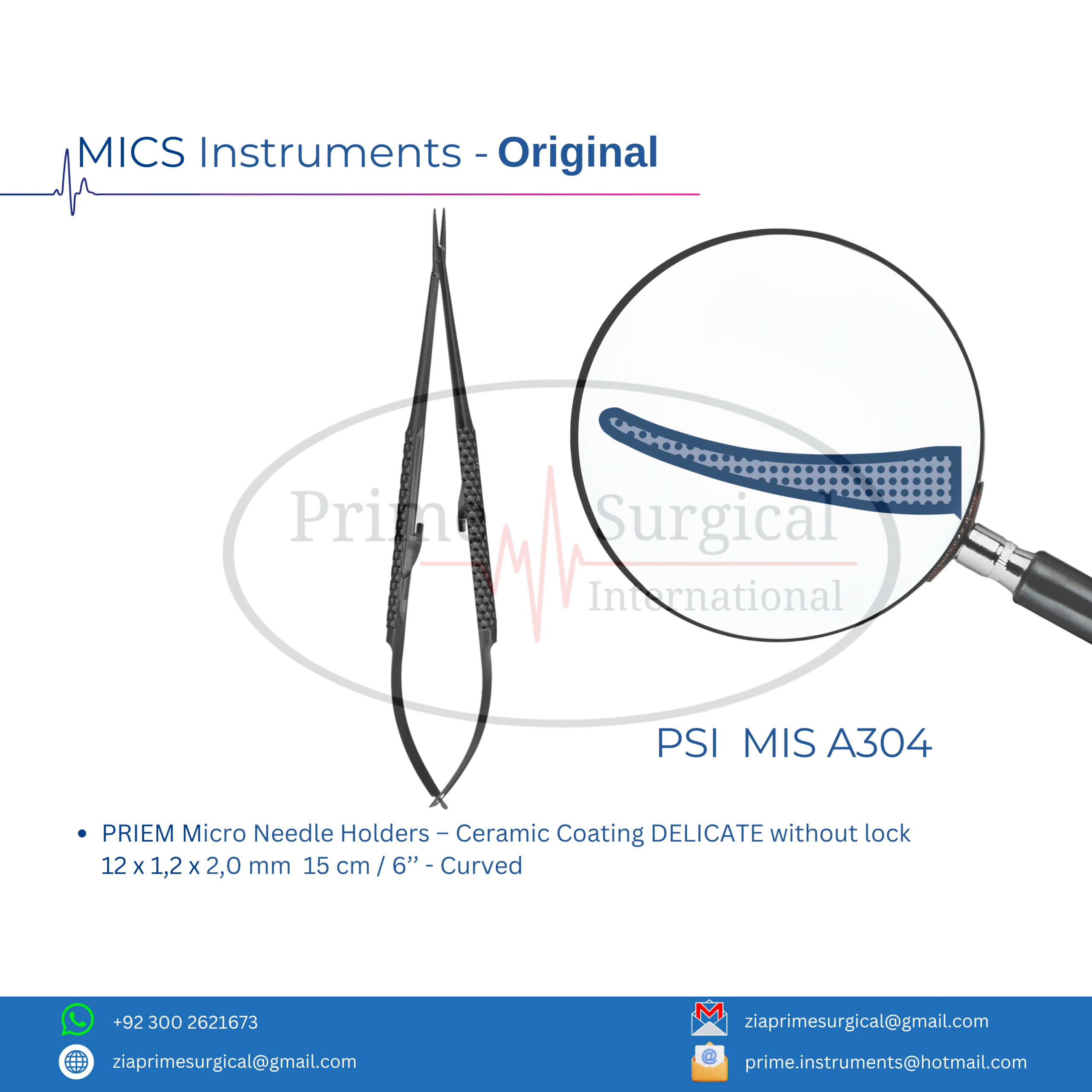 PRIEM Micro Needle Holders – Ceramic Coating DELICATE without lock 12 x 1,2 x 2,0 mm 15 cm / 6’’ – Curved