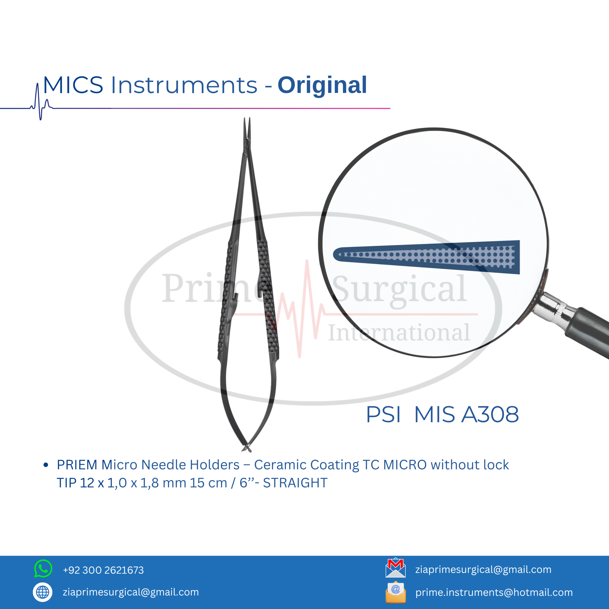 PRIEM Micro Needle Holders – Ceramic Coating TC MICRO without lock TIP 12 x 1,0 x 1,8 mm 15 cm / 6’’- STRAIGHT