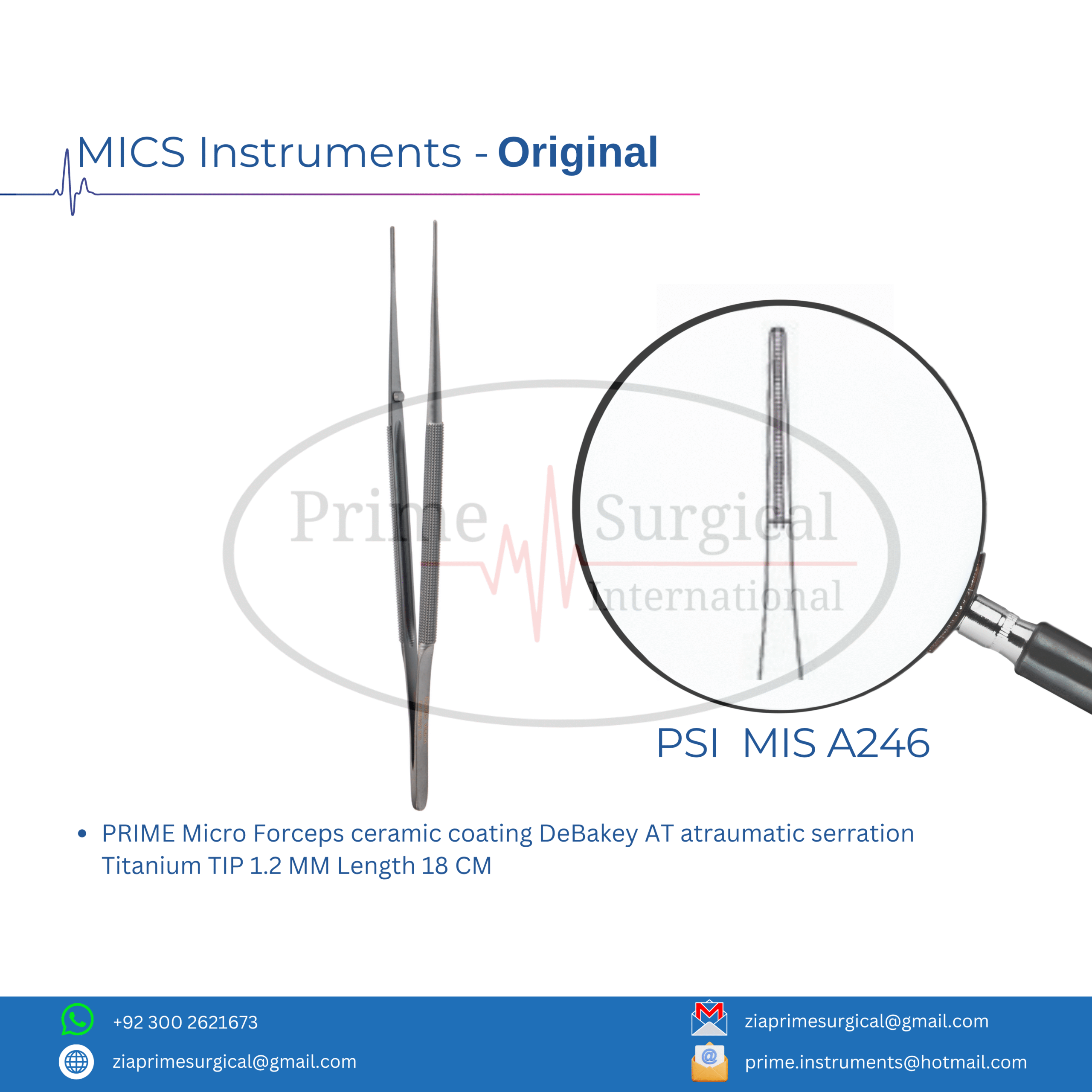 PRIME Micro Forceps ceramic coating DeBakey AT atraumatic serration Titanium TIP 1.2 MM Length 18 CM