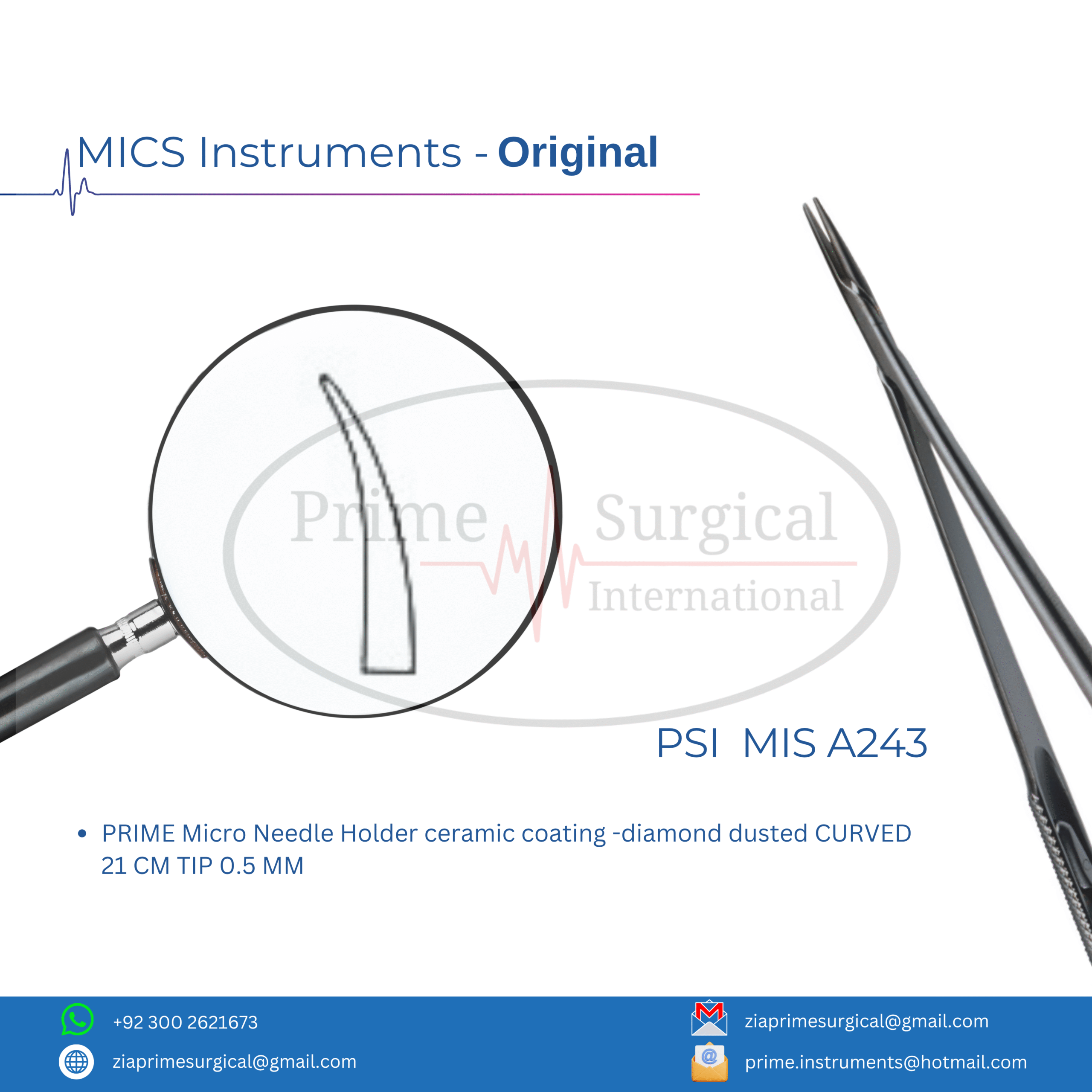 PRIME Micro Needle Holder ceramic coating -diamond dusted CURVED 21 CM TIP 0.5 MM