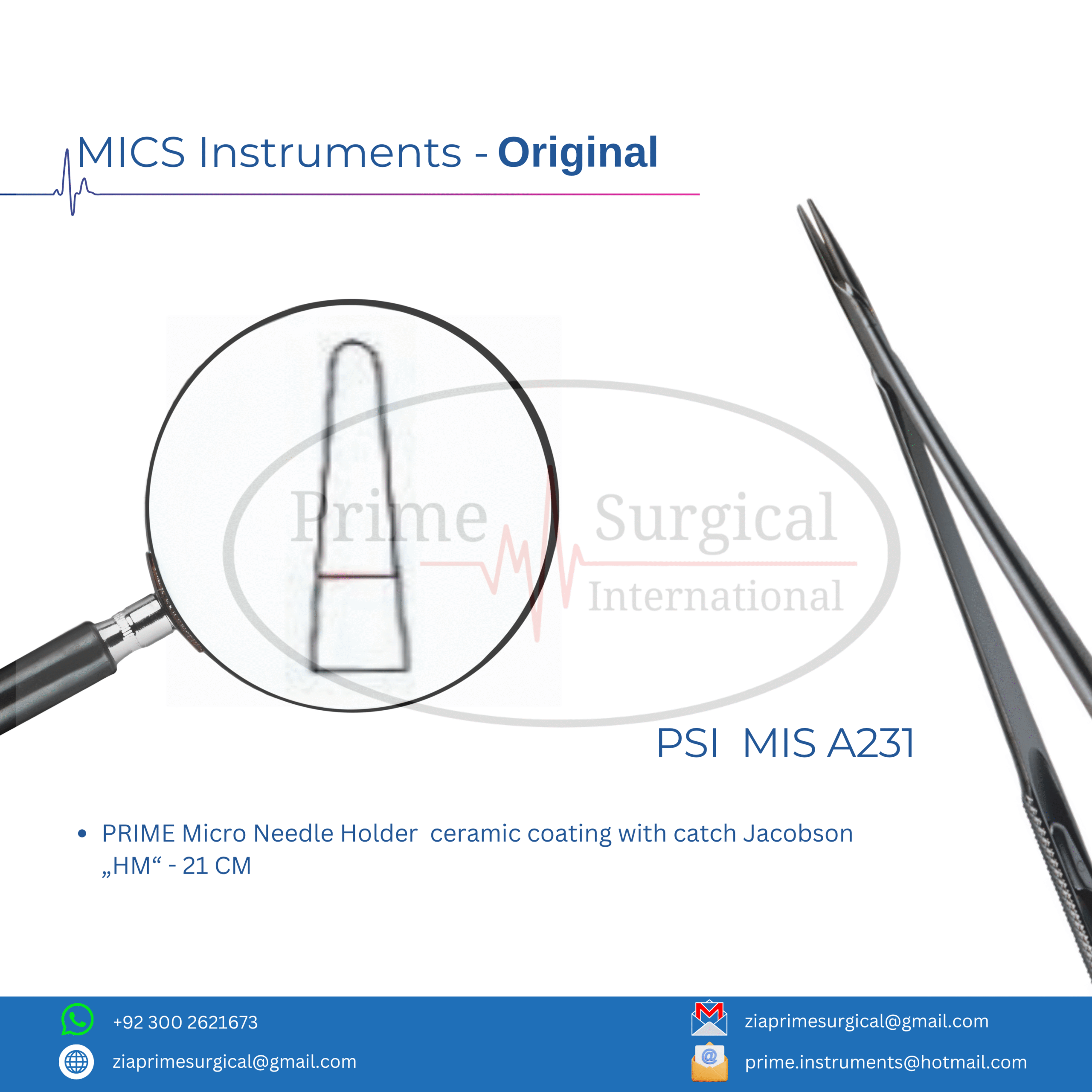 PRIME Micro Needle Holder ceramic coating with catch Jacobson „HM“ – 21 CM