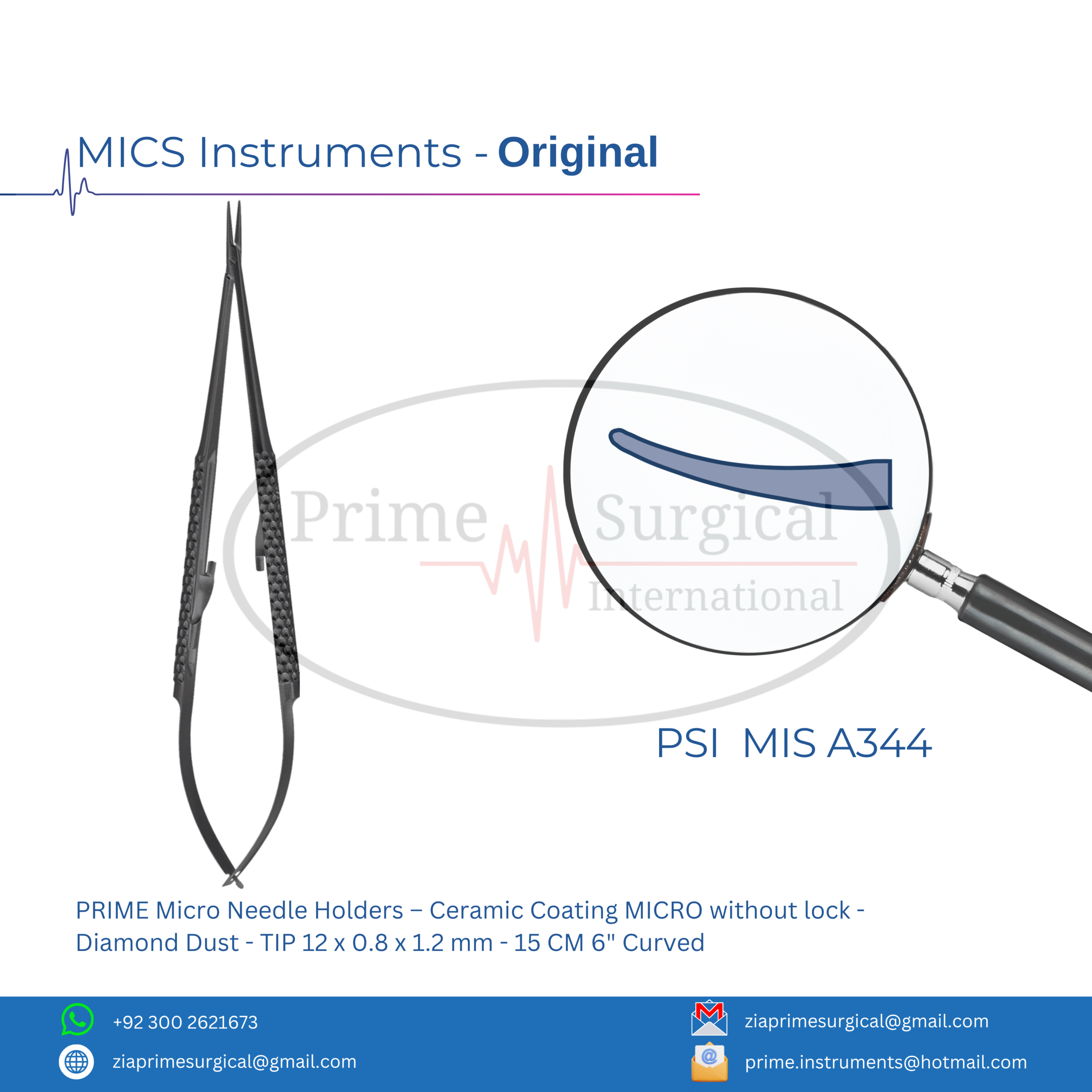 PRIME Micro Needle Holders – Ceramic Coating MICRO without lock – Diamond Dust – TIP 12 x 0.8 x 1.2 mm – 15 CM 6″ Curved