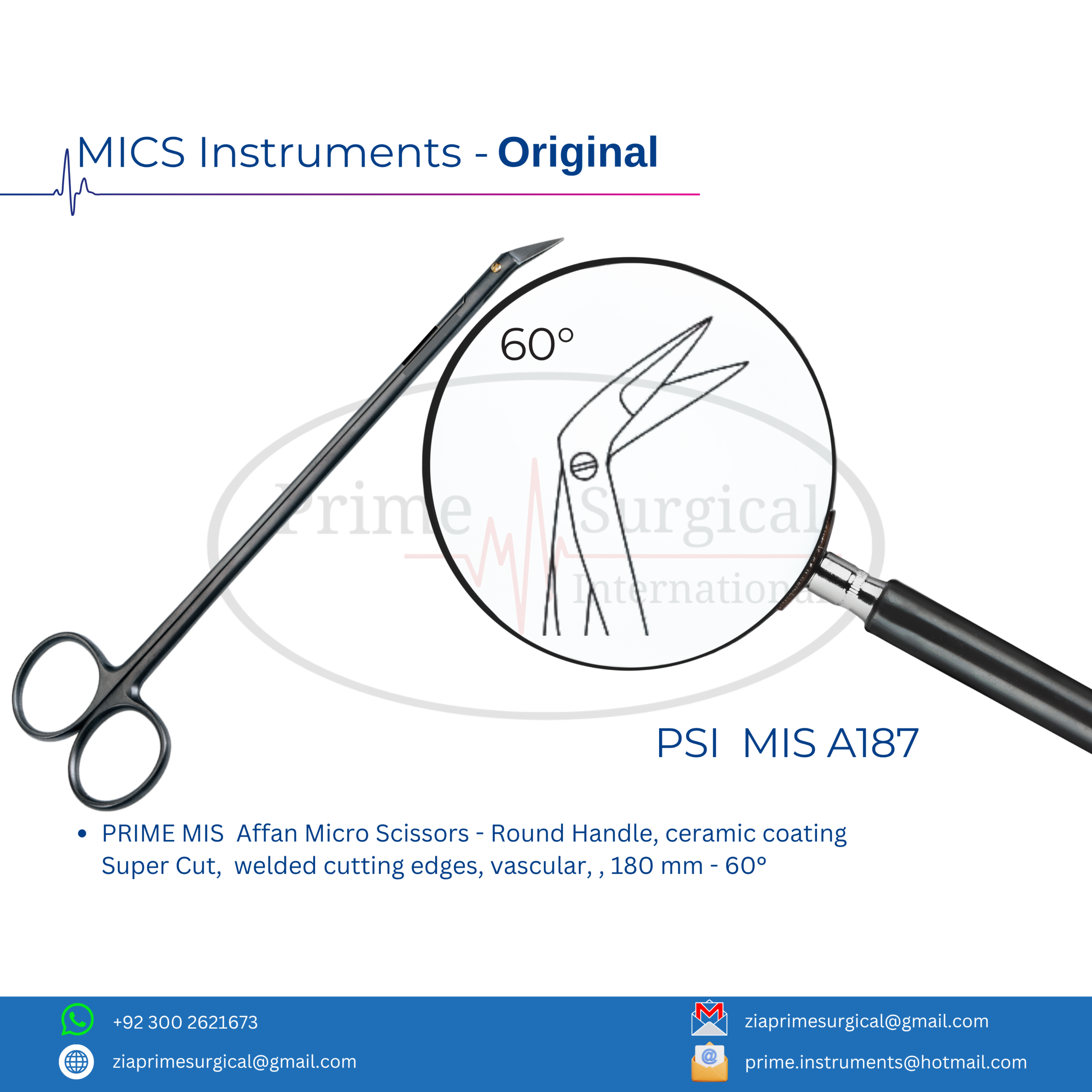 PRIME MIS Affan Micro Scissors – Round Handle, ceramic coating Super Cut, welded cutting edges, vascular, , 180 mm – 60°