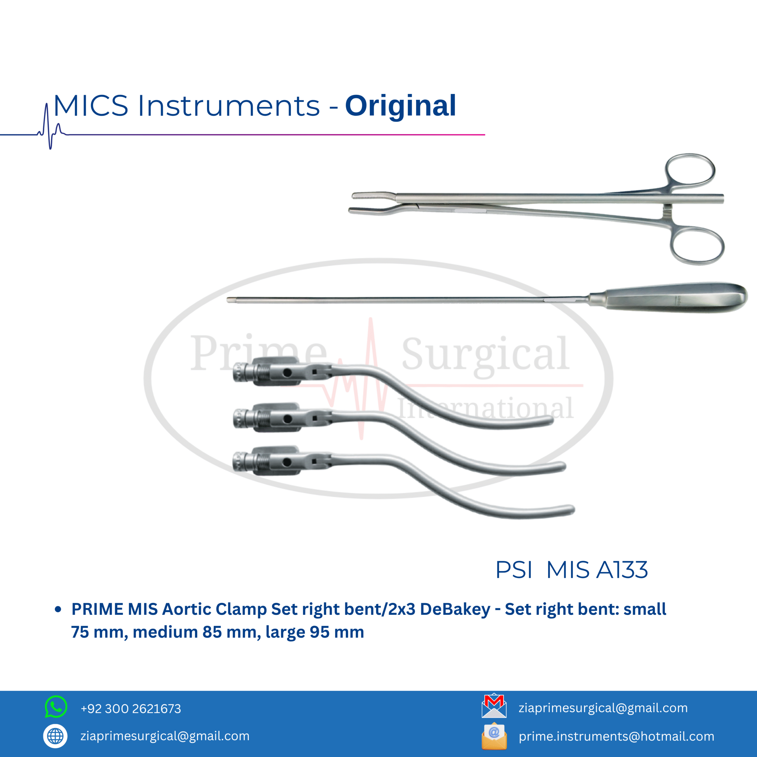 PRIME MIS Aortic Clamp Set left/2×3 DeBakey – Set left: small 75 mm, medium 85 mm, large 95 mm