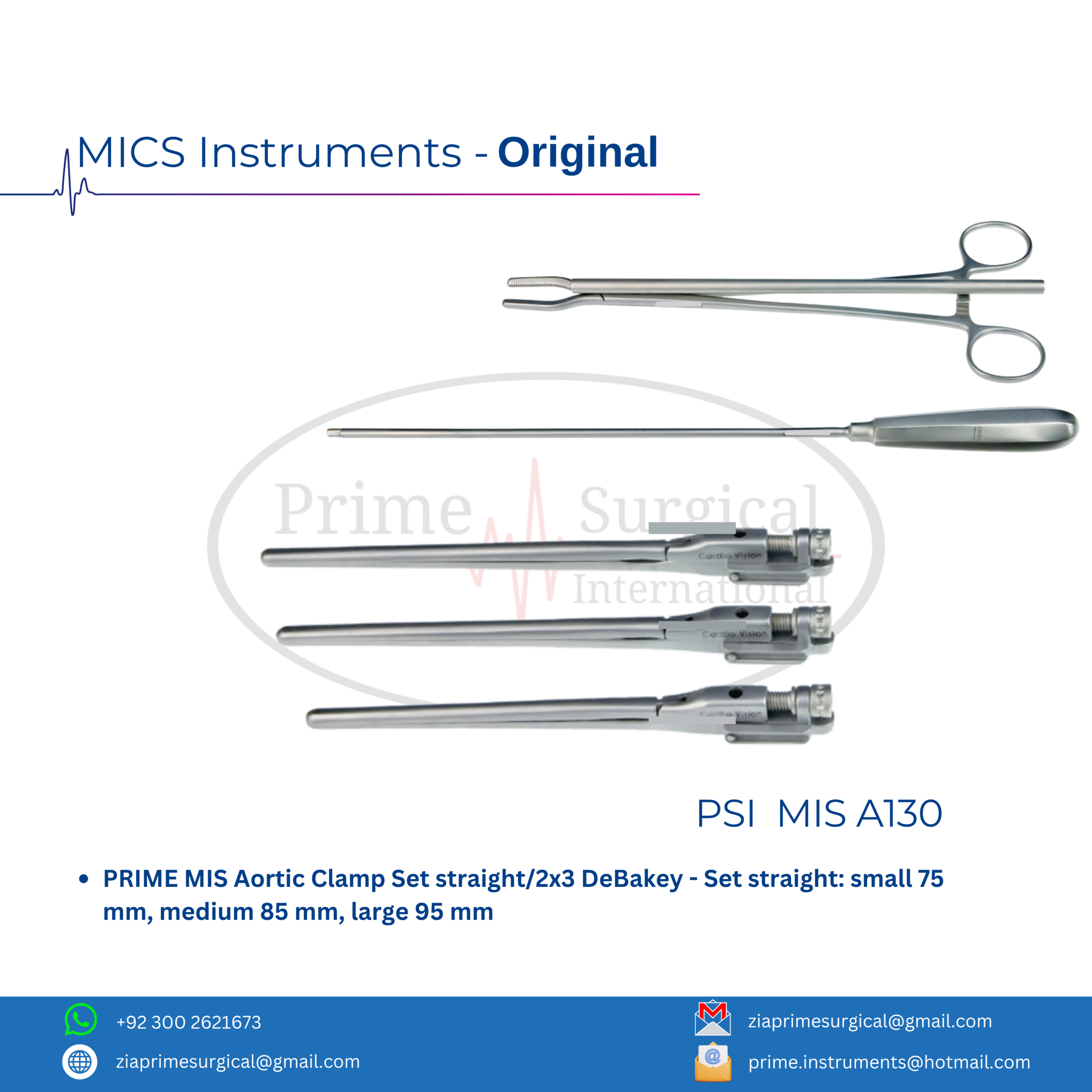 PRIME MIS Aortic Clamp Set straight/2×3 DeBakey – Set straight: small 75 mm, medium 85 mm, large 95 mm