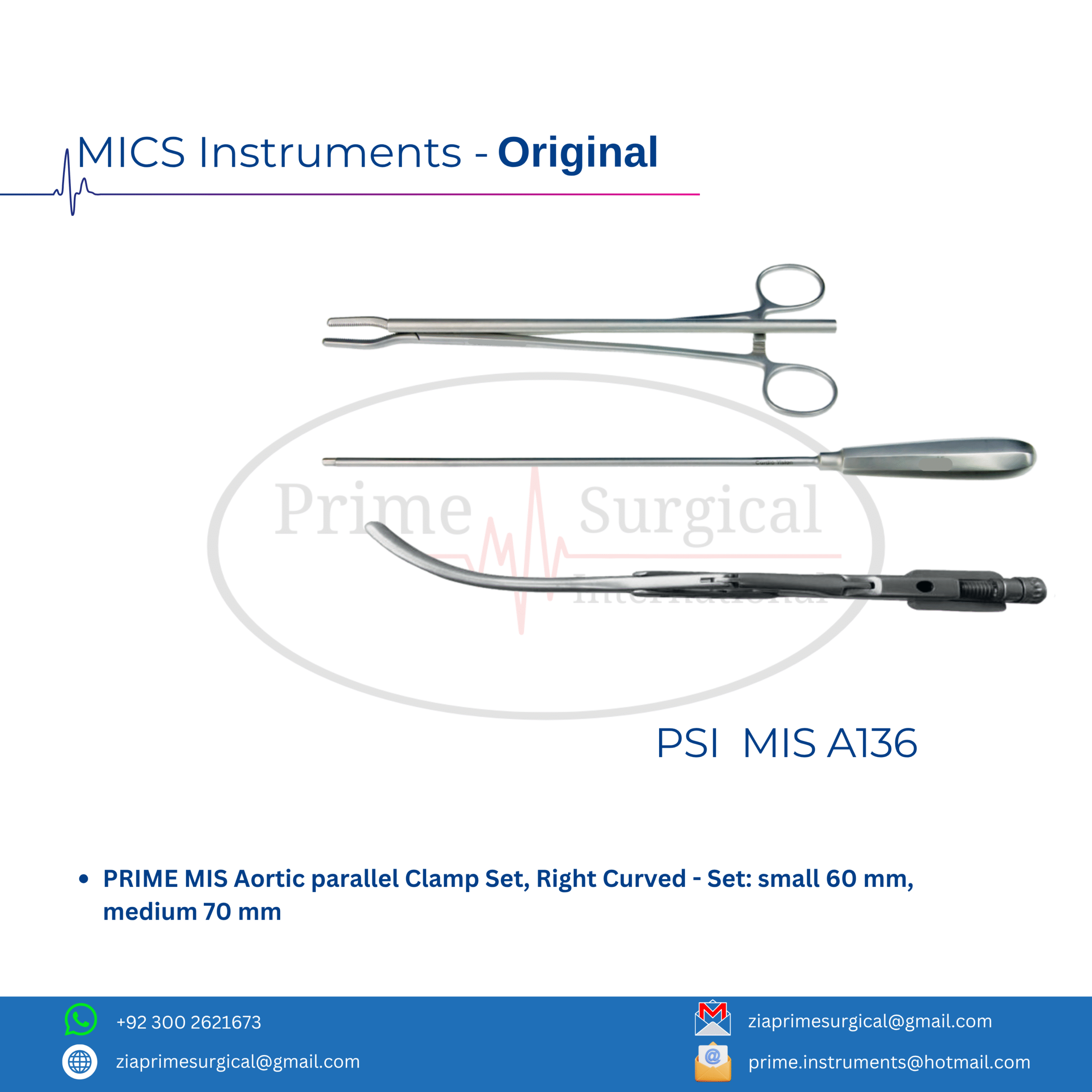 PRIME MIS Aortic parallel Clamp Set, Right Curved – Set: small 60 mm, medium 70 mm