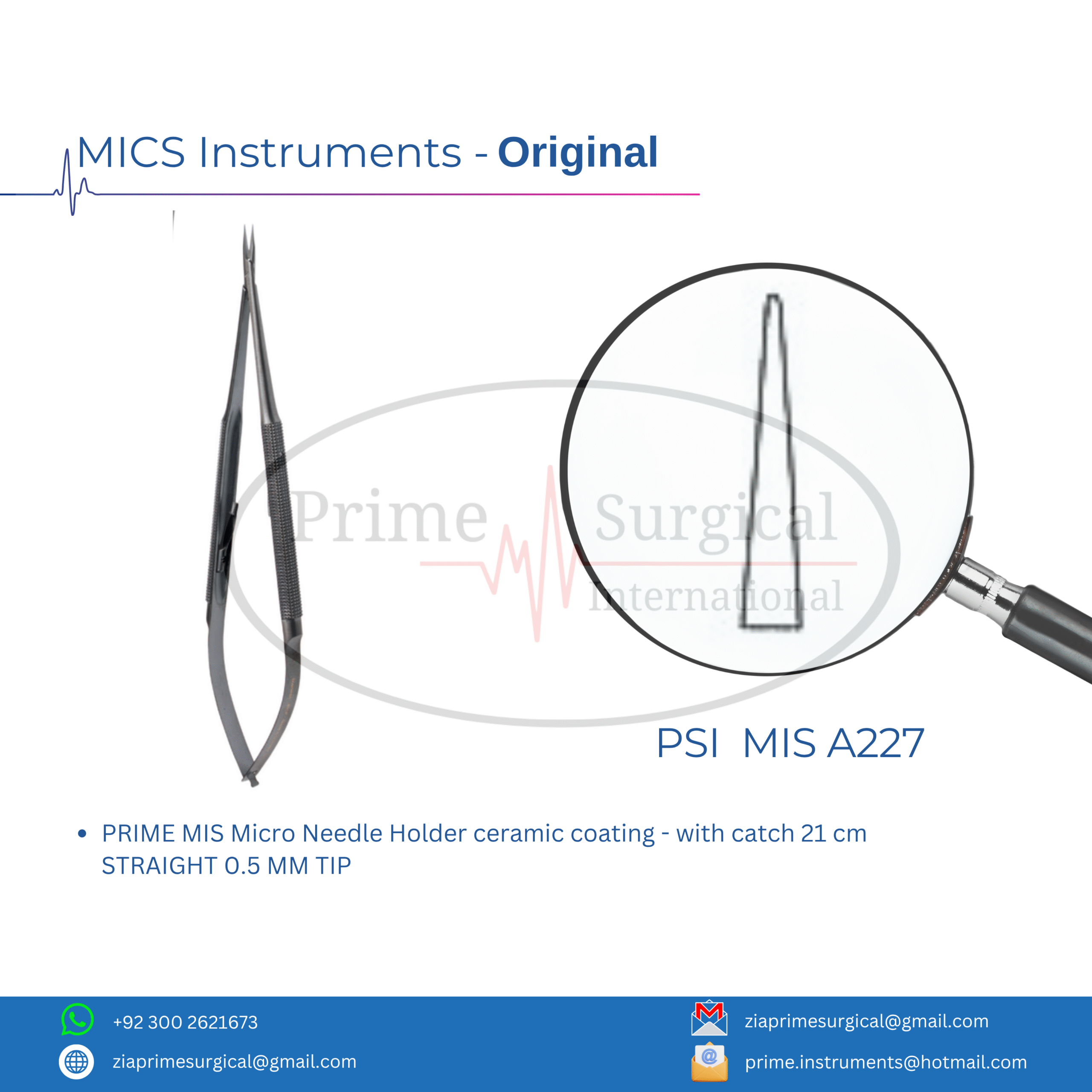 PRIME MIS Micro Needle Holder ceramic coating - with catch 15 CM CURVED TIP 0.5 MM