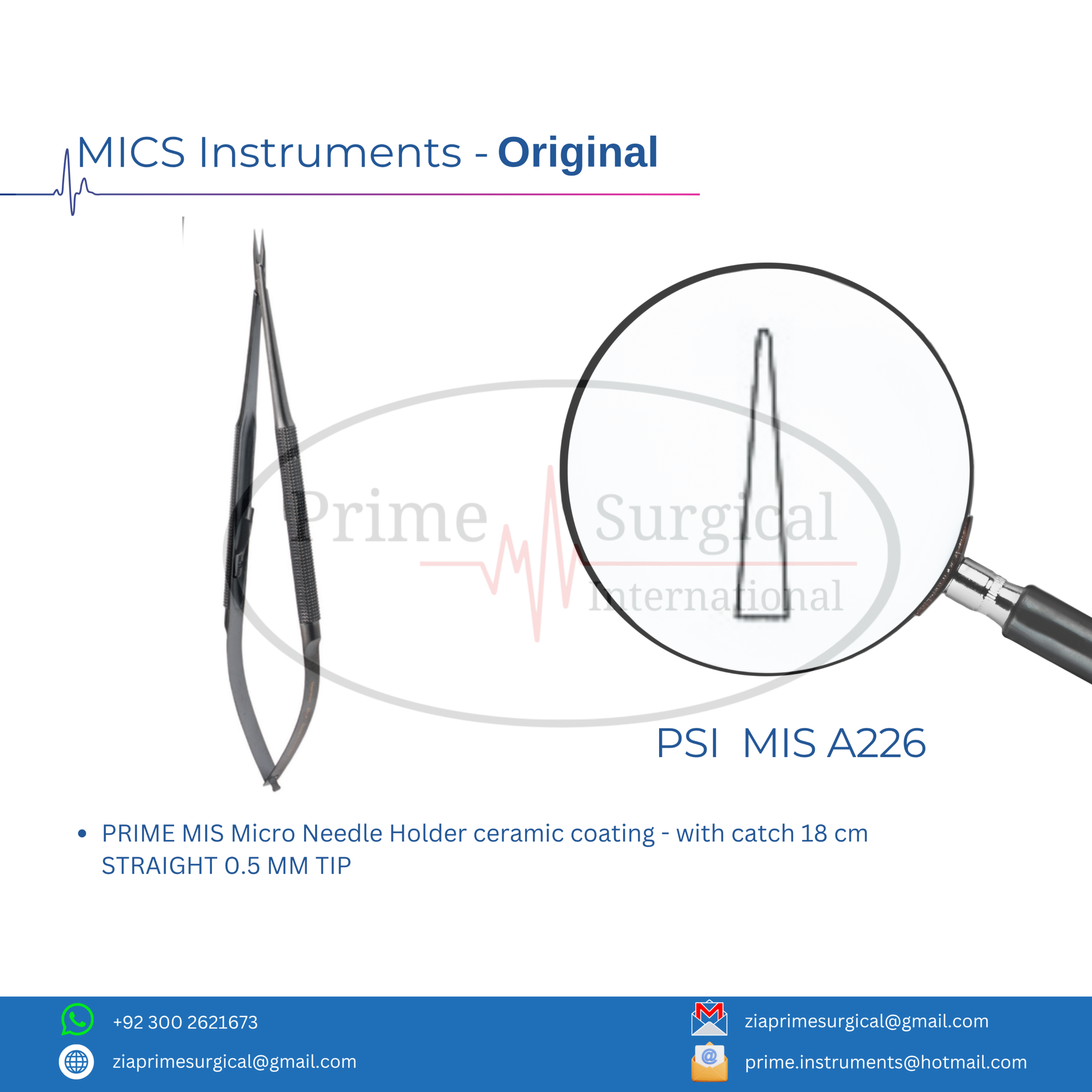 PRIME MIS Micro Needle Holder ceramic coating – with catch 15 cm STRAIGHT 0.5 MM TIP