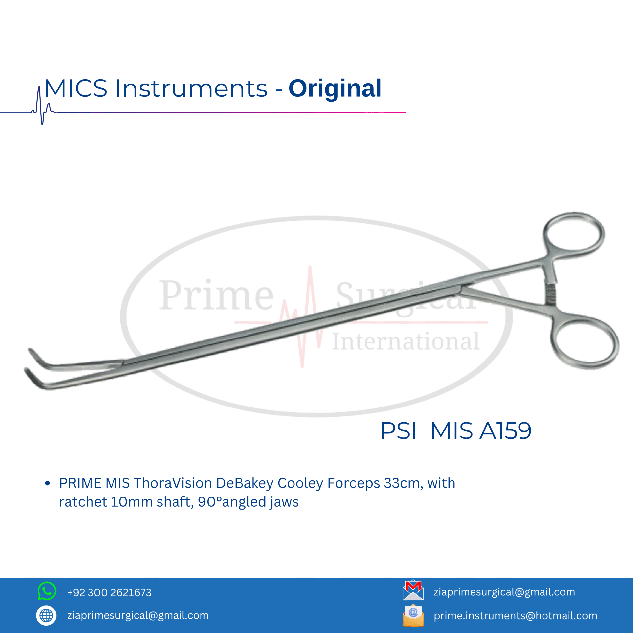 PRIME MIS ThoraVision DeBakey Cooley Forceps 33cm, with ratchet 10mm shaft, 90°angled jaws