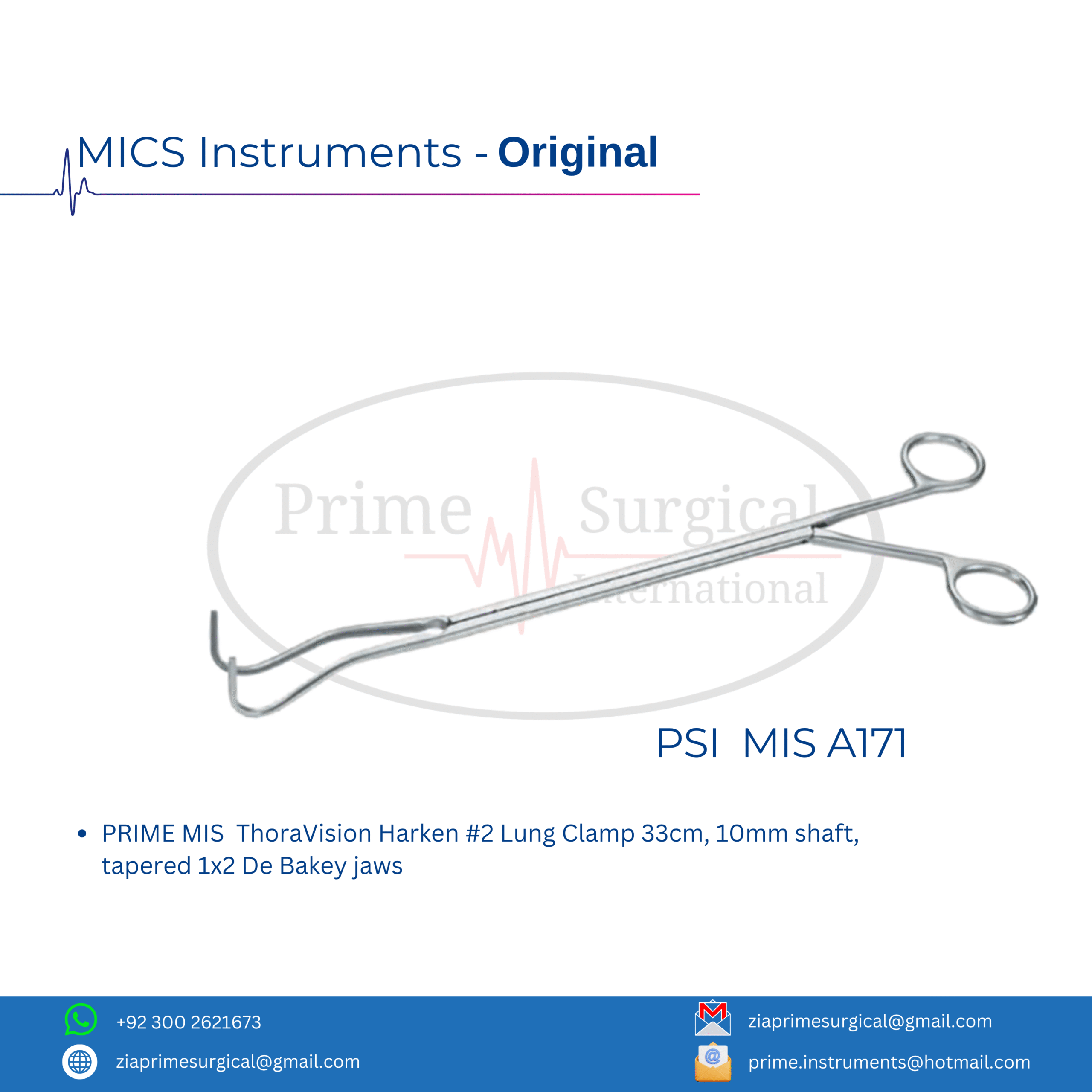 PRIME MIS ThoraVision Harken #2 Lung Clamp 33cm, 10mm shaft, tapered 1×2 De Bakey jaws