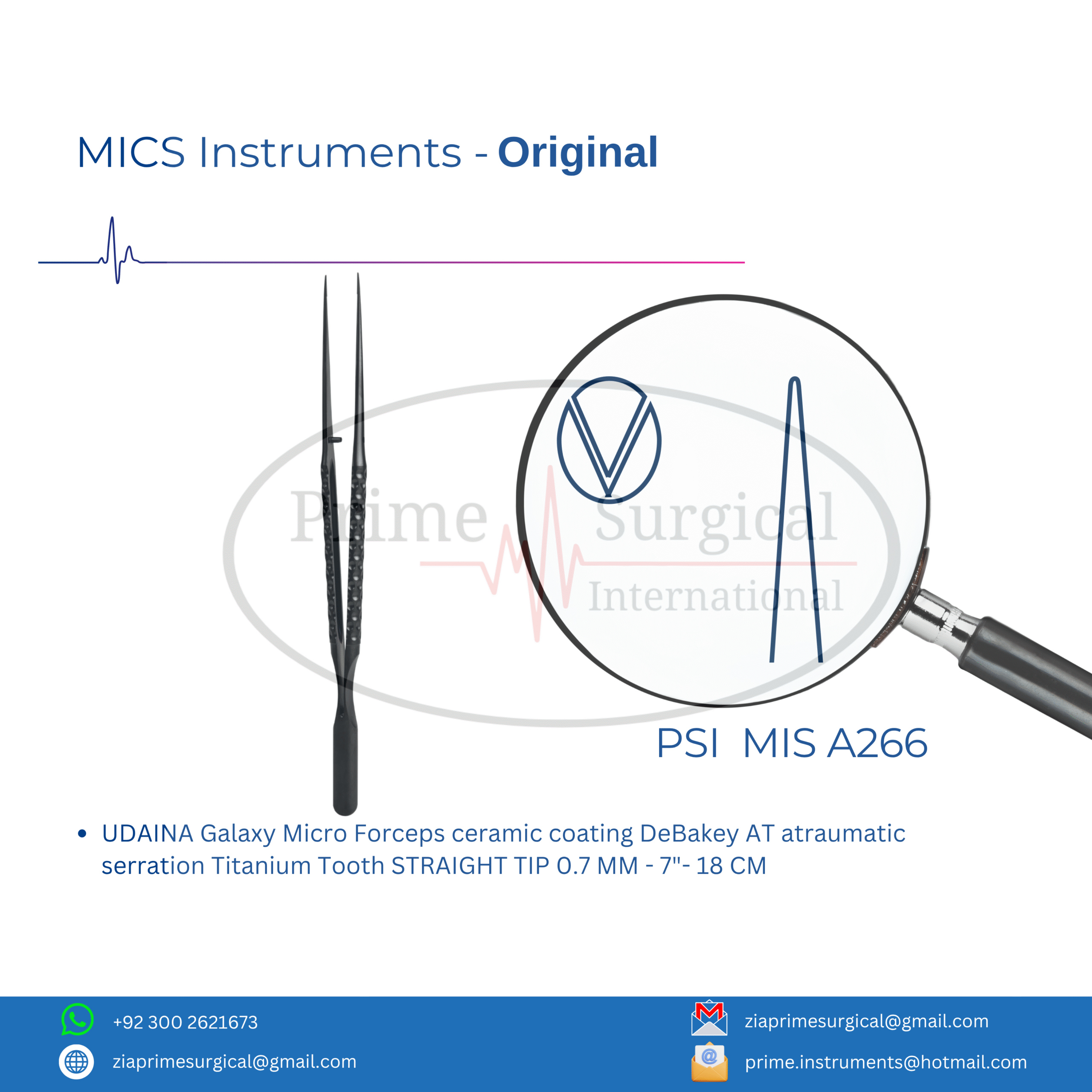 UDAINA Galaxy Micro Forceps ceramic coating DeBakey AT atraumatic serration Titanium Tooth STRAIGHT TIP 0.7 MM – 7″- 18 CM
