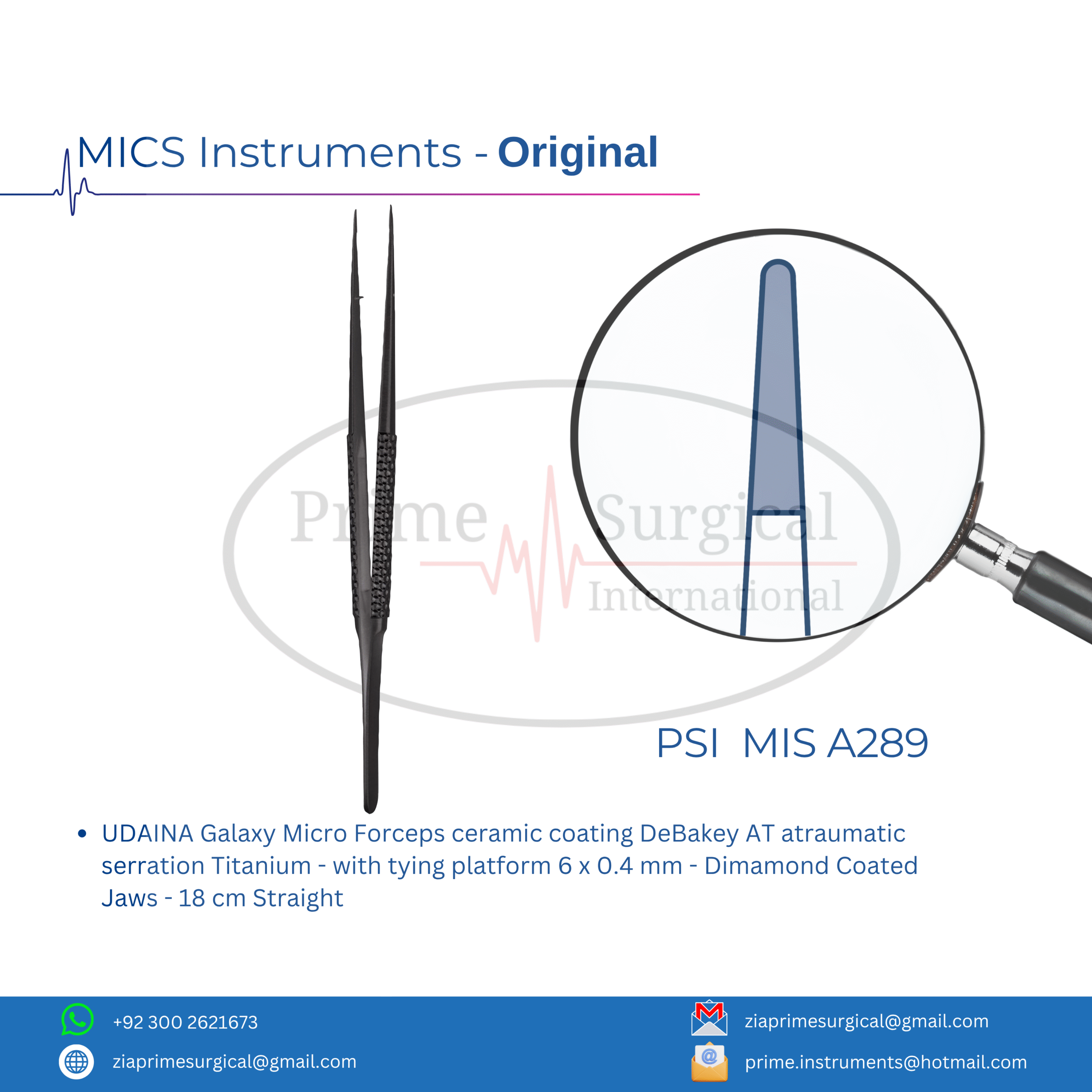 UDAINA Galaxy Micro Forceps ceramic coating DeBakey AT atraumatic serration Titanium – with tying platform 6 x 0.4 mm – Dimamond Coated Jaws – 18 cm Straight
